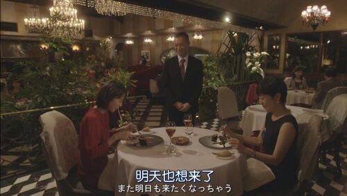 4、与室毅在餐厅用餐时穿的蕾丝长裙
