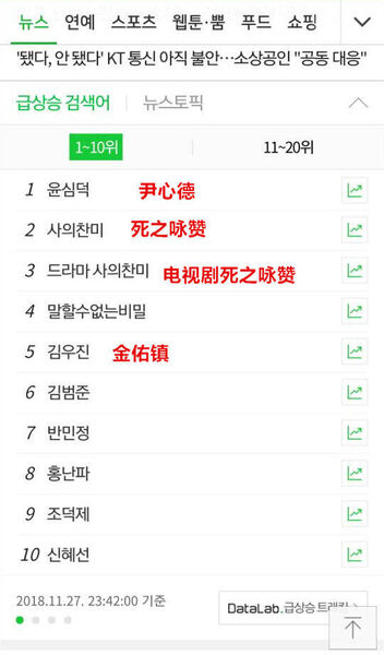 死之咏赞播出当日热爆了韩网NAVER,