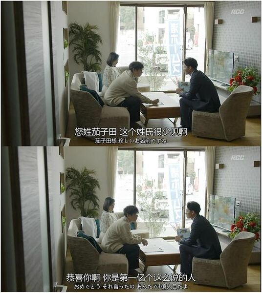 这时秀明遇到了客户茄子田太郎(中山裕介)和茄子田绫子(木村多江),这对客人十几年老夫老妻,婚姻生活也是一塌糊涂。妻子是家里的佣人和保姆,上有老下有小,人人可以使唤她,人人不给她尊重和关爱。公公婆婆要伺候,老公儿子要服侍。老公太郎对年轻女人明目张胆地勾勾搭搭,妻子绫子只好装作没看见。回家太郎还要作威作福,问绫子,是谁给你这么好的生活(这种受尽精神折磨、劳心劳神的生活哪里好了?!),要她低头跪着谢恩。绫子没按时回家,对于全家来说等于没有晚饭吃,谁能想到十几年谨小慎微、尽心尽责的妈妈不回家烧晚饭,却去找秀明寻求慰藉。毕竟没有人给的温暖,秀明给了,陪她在样板房里展开了甜蜜温馨的夫妻生活对话。没人注意到的花园,秀明注意到并赞美了。没办法诉说的委屈,秀明都看在了眼里。