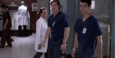 想想这个剧里最笨手笨脚、经常掉东西、在各种场景都能晕倒、还经常被自己拌倒、仍然住在自己妈妈家里地下室的见习小男生,遇到了一个专业过硬、爽朗、主动的主治医生,这不就是活脱脱基情版霸道总裁爱上我的戏码吗?