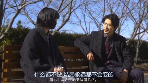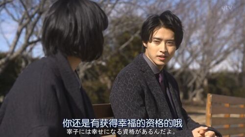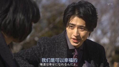 第二集给出线索,宰子是来救男主的,她发现男主被人盯上,所以用口红给他留下警示字条。既然是救命小天使,为何不能说明原由,笑着接吻,偏要拍成鬼片既视感,莫非这都是导演的安排(制造悬疑紧张感)?第二集结尾天雷滚滚,和马(志尊淳)因爱生恨,要和心爱的渣男Eight(山崎贤人)共赴黄泉,最后捅死了Eito后跑路了。神秘流浪汉营田将晖在倒地的eito身旁狂笑,看得我毛骨悚然。导演这段你想表达什么?