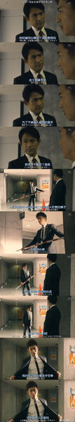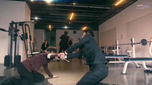 这时警察sp带枪进来了,记者随即紧张,拿出武器威胁大臣。岛崎章和江口洋介比手势,声东击西的引开记者注意力,最后徒手制服了拿刀的记者救出大臣。