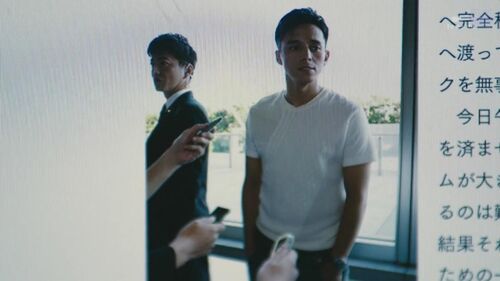 ====接着是为后面留下的悬念,工桑和岛崎章通话,岛崎章对他表示感谢,工桑说他还是不愿意和他共事,画外音是不愿意和骗子共事。然后镜头切换到六年前球员转会的新闻,恰好拍到了作为保镖的岛崎章(岛崎章对外声称自己的新人),这就是后面编剧留的悬念。