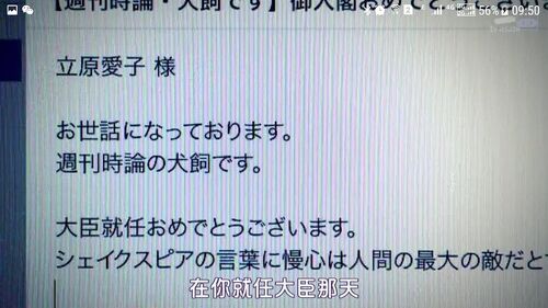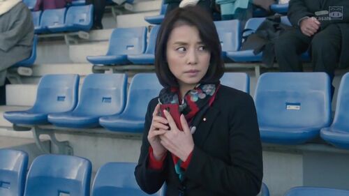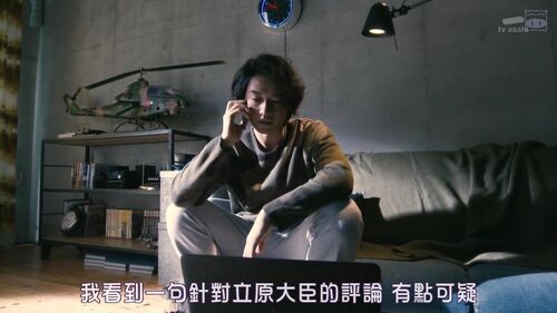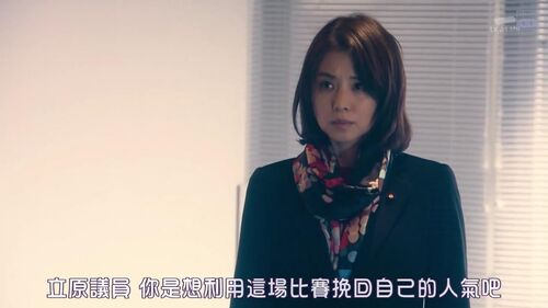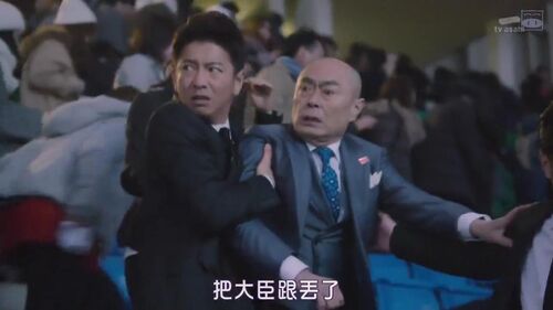 镜头随即推到岛崎章去当路边的护路保安了。恰好在执勤时遇到江口洋介带着女大臣路过,又看到后面有追逐的人,出于职业本能,他意识到副驾坐的江口洋介是类似保镖的人物以及事情的严重性。所以给予破例放行,拦住了后面的记者(记者即为后面的关键人物此刻只是带到一个镜头)。然后镜头才切到新闻报纸的介绍大臣身份,随后通过岛崎章和儿子早上在家看电视的情节来说明女大臣的身份和舆论处境。