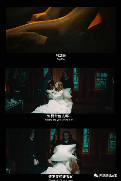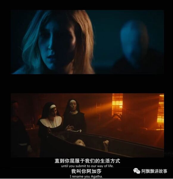 为了有助睡眠,所以每天晚上孕妇都要吃安眠药,玛丽趁机藏起了药,想在夜色降临后离开,没想到她没有离开修道院,反而被没有五官的神职人员给带到了地下室,她被硬生生的关进棺材,为了让玛丽屈服,院长给她起了个新名字——阿加莎,并且要求她承认自己是阿加莎才能离开,在这种反复折磨下,玛丽终于松口,她的名字叫阿加莎。