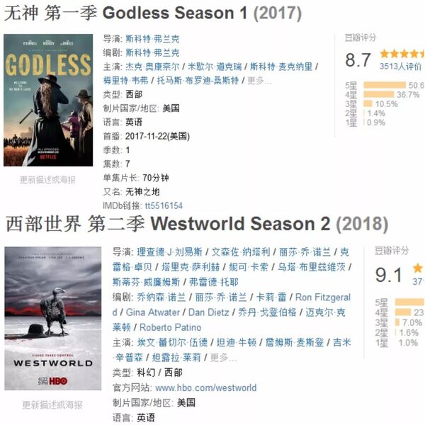 一部是《无神》,另一部就是第二季刚刚结束不久的《西部世界》。