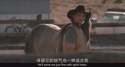 这匹野马是连接父亲和小儿子共同的万中无一的牛仔特征的桥梁,是最重要的暗喻主角的交替继承,也自始至终暗喻着达顿一家人的血缘纽带。