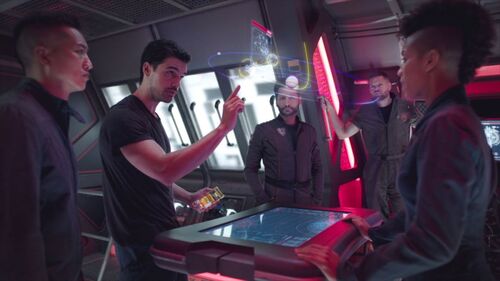 同时还留有两大空间用作接驳功能,一个是用于停留短程交通船,一个存放两个小型太空赛艇,也就是第一季中毛小姐所用,第三季中 Avasalara/Bobbie 用来逃跑的工具。