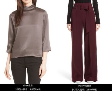 Vince上衣:$295(人民币:1,865RMB)Theory阔腿裤:$455(人民币:2,880RMB)