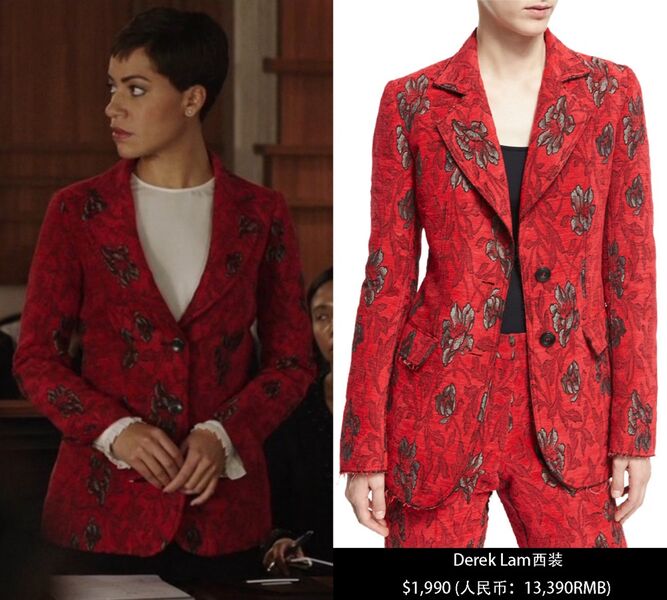 上庭穿的红色外套也是Theory,不大喜欢,不放图了。高调迎战的Lucca造型一Derek LamDerek Lam西装:$1,990 (人民币:13,390RMB)