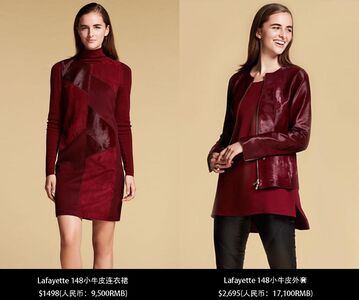 小牛皮外套:$2,695(人民币:17,100RMB)小牛皮连衣裙:$1498(人民币:9,500RMB)