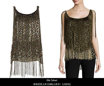 最受欢迎客串-Elsbeth造型一Elie Tahari串珠流苏上衣:$348(人民币:3,320RMB)×2半裙是用同款上衣改造的。项链和腰带都是剧组做的,Diane在Party上送给Elsbeth之后,E还有继续戴哦。