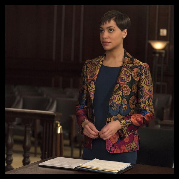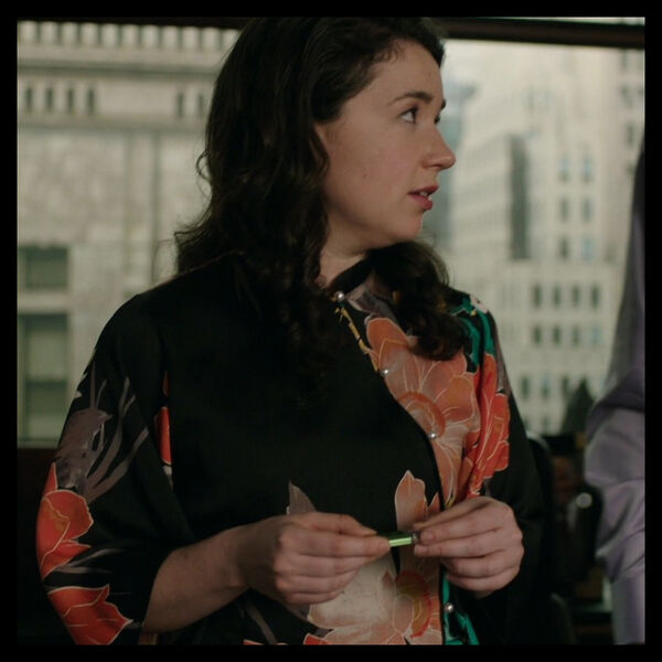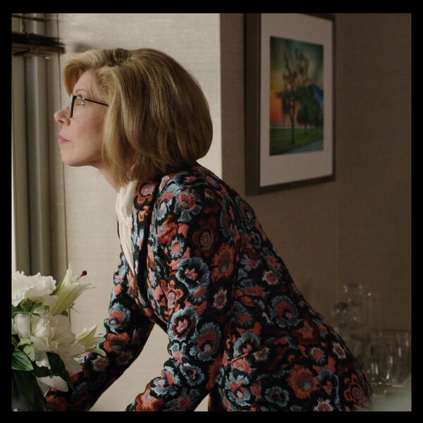 服装师Dan对原版夹克做了一些修改,将胸前的大蝴蝶结取掉了,在米白色的边饰上加了一些看起来更优雅和严肃的黑色蕾丝边,毕竟Diane要穿一整集,不能太浮夸。