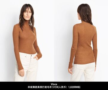 羊绒薄款高领打底毛衣:$159(人民币:1,020RMB)