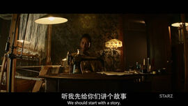 被招安的女王开场时,南希先生为星期三和影子做西装,但略感无趣的他决定为两人(观众们)讲一个故事——