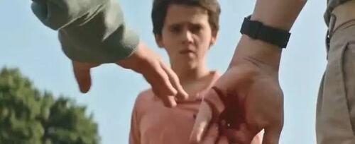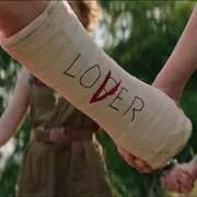 可以看到石膏上写的Loser(窝囊废)字样,但被改成Lover(情人),原著中他们都在埃迪手臂的石膏上签名,代表着联盟的约定与承诺。