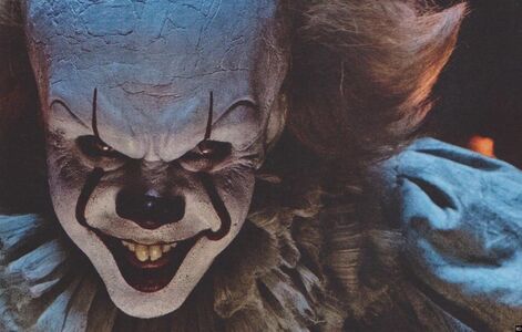 比尔·斯卡斯加德饰演的佩尼怀斯是电影《小丑回魂》中的主要反派角色。他以一张狰狞的脸孔和黄色的瞳孔令人不寒而栗,厚厚的油彩更是强化了其邪恶形象。作为一个连环杀手,佩尼怀斯专门残害儿童,他的攻击目标多为小孩,展现了极端的恶行特征。
