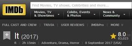 影片改编自恐怖大师史蒂芬·金(肖申克的救赎,魔女嘉莉,迷雾,1408幻影凶间等)1986年的同名经典小说,一经上映便成黑马,打破多项票房纪录:北美恐怖片票房首映日影史最高,9月北美票房影史最高……