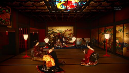 有两组描写两人镜头特别的美,一个是善次郎带着阿荣去看歌舞伎,两人坐在小船上,阿荣在前景是清晰的,善次郎在后景有些虚焦。其实这可以看做两人关系的隐喻,善次郎在阿荣心里其实一直是一个犹如灵魂一样的人物,她最终找到关于绘画的光影的真谛也正是因为和善次郎看到了歌舞伎在夜色中的繁华喧嚣,或者说是在她垂垂老去的时候悟出的关于人间情爱、风月寂寥。