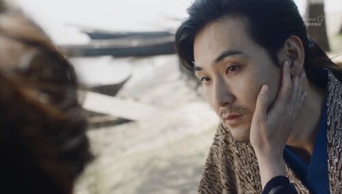 还有一个非常打动我地方就是阿荣在母亲死后和善次郎坐在河边,说起善次郎和那个叫阿泷的艺妓同居。阿荣伸手摸善次郎的脸,善次郎也抚摸阿荣的脸颊,两人就这么看着,阿荣在流泪,那种眼睛里的深情呼之欲出。她说:善大哥的温柔是毒药,我还是服下了毒,感到头晕目眩。这么描写爱情就对了,一个电影如果将爱情那一定要让观众相信男女主人公在相爱,它必须拍出能让观众感觉到荷尔蒙的地方,比如《甜蜜蜜》在狭小的空间里李翘穿衣服又脱衣服,那种男女间微妙的情感马上就能传达给观众。而《眩:北斋之女》里这个动作让我第一次从合作过很多电影的松田龙平和宫崎葵身上看到了cp感,我会觉得,啊,他们俩在这个瞬间难道真的不会为对方动心吗?