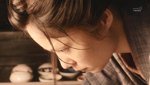阿荣和善次郎的情感是很复杂的,他们几乎是一起长大,又在阿荣丧母之后有了亲密关系,阿荣是很敬重善次郎的,他是一个很不错的画家,但两个人的人生追求却特别不一样。阿荣把绘画当做毕生的追求,基本上就是一个画痴,但善次郎活得很随意,欣赏欣赏歌舞伎、失踪后拖家带口地开了青楼。