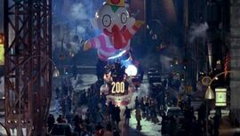 这里指的是在1989年《蝙蝠侠》中,小丑在哥谭闹市中放着Prince(美国传奇歌手)的歌曲游行撒钱,企图制造大混乱,最后当然是被老爷制服了。