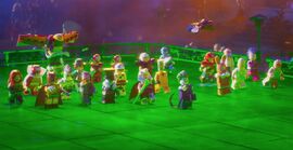 小丑在幻影地带遇到一块积木,得知对方叫Phyllis后,便说:“那是我奶奶的名字!”。此处恶搞了《蝙蝠侠大战超人》中蝙蝠侠和超人的母亲都叫Martha的梗。