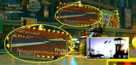 电影中出现的哥谭地标有Iceberg Lounge(企鹅人的夜总会)、Max Shreck的公寓(《蝙蝠侠归来》的反派)和LexCorps(莱秃的公司)等。