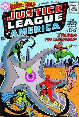 老爷发现超人和英雄们在庆祝正义联盟57周年(而且一次也没邀请过他,再次心疼老爷)。正义联盟首次登场正是在57年前,1960年的《英勇与无畏》第28期。