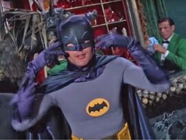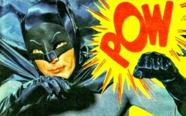 老爷让罗宾狠狠重击坏人,带有拟声字"Bam!""Pow!"等的气泡就会弹出来,这是1966年TV版的经典元素之一。