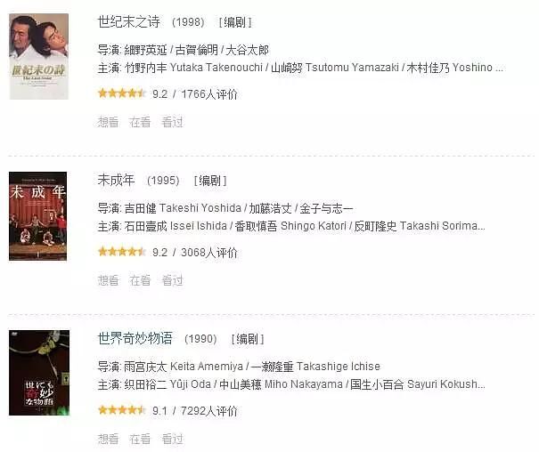 他的很多作品豆瓣评分都高达9分,几乎每一部都是必看的经典。