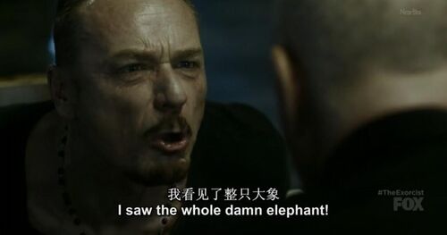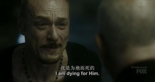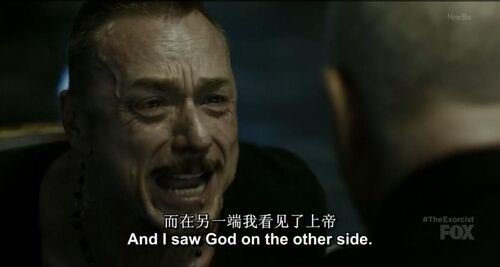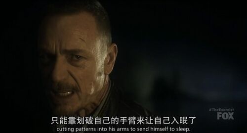 演员的表演很细致,他很用力又不至于用力过猛。他脸上的每一条皱纹都在颤抖,他悲愤又坚定,隔着屏幕都能从他的话里、神情里体会到,手臂滴血、全身被绑的神父Marcus是如何虚弱,又是何等强大地与恶魔对峙。