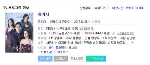 KBS新水木剧《黑骑士》首播,8.1%的收视率入榜蝉联了周三周四剧收视冠军刷新自身记录,创下了11.1%的全国收视率被誉为KBS最强幻想浪漫剧