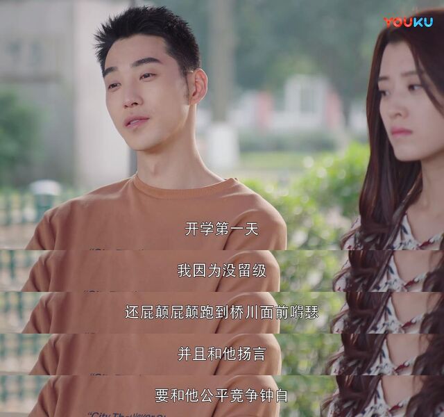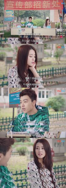 开篇是暑假及开学,却是在冬天拍摄的。大幅度的背景虚化是为了掩饰路人不合剧情适宜的穿着,尽管如此,盛夏的骄阳和树荫却被一片冒着青芽儿瘦削树木和枯黄草地取代,更别说夏天特有的冰棍和西瓜了。大二时光跨度一年,剧组时间条件有限可以理解,但是满满的季节违和感,路桥川演员更是口误说出了“过了个寒假”,这就不大好了吧。