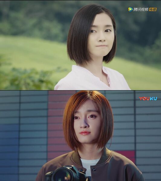在第二季中,首先她的发长基本没变,发色换成了明度较高的棕色,配合发色美瞳也换成了较浅的棕色美瞳。眼妆方面上了精致的眼影,着重勾画了卧蚕显得眼睛更大,画了很流畅的内外眼线,夹翘了睫毛并上了很有存在感的睫毛膏,使眼神更加温柔。底妆方面增加了腮红和高光的使用,使面部更有血色并更加立体。唇妆方面选择了带珠光或者滋润型的口红或唇釉,打造玻璃唇的效果,颜色上选取了活泼的水红、草莓红或橙色(其他剧照截图我懒得截了233),但总体还是偏清淡毕竟是学生。总体来说,第二季的钟白,从“女汉子”的清爽利索变得妆容精致神态妩媚动人。