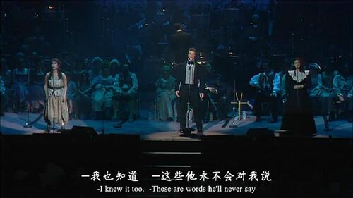 就拿《悲惨世界》由马吕斯、珂赛特、艾潘妮共同演绎的“爱情三重唱”《A Heart Full of Love》举例。起先是马吕斯和珂赛特互诉爱意的对唱,一位深情一位甜美,表现出坠入爱河之人的羞赧与狂喜;进B段后加入了艾潘妮的重唱,歌词内容和演唱情感哀婉凄美,表现出深爱马吕斯的艾潘妮对前者不解风情的控诉与无奈。有趣的是,艾潘妮的加入作为原曲的一个变调跟在每一句对唱的情歌之后,歌词在形式上紧紧扣住原词,但表达的却是完全不同的情感。