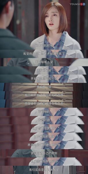 “我们认识太久了所以不合适”、“你亏欠了我十三年现在在还债所以我们不合适”等等,说白了都是钟白自己的视角、自己的见解。如果在现实中另一半这么跟你说分手,你肯定会思考下ta说的到底在不在理;但是放在了屏幕里,我们好像轻易地就把它当成事实和前提条件了呢。