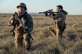 军事方面,几位主演很明显是经过一定训练的,战术动作不会让人出戏。装备上,以我一个伪军迷的水平来看比较注重细节。道具枪上的斑驳都很真实,配件也很丰富。有时候用红点后边配可侧翻的三倍镜,玩过使命召唤现代战争3的玩家一定会觉得很亲切。又有时候是ACOG顶部配小红点。说明剧组在道具上没有糊弄事,至少是做了一些努力的。(当然不包括中间俄军和我军的装备)。不过有些瞄准的镜头,明明是红点镜,人却好像就在眼前一样,应该也是为了镜头叙事做出了妥协,无可厚非。