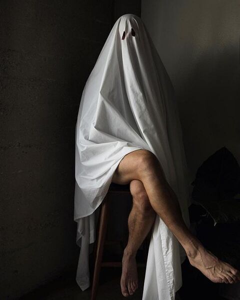 两个披着床单的鬼魂在自己人去楼空的屋子里隔着窗户对话。