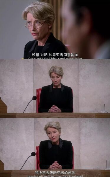 此时的法庭内,一个未成年、患有白血病的耶和华见证会男孩拒绝接受输血,最终的判决就在菲奥娜的手中;