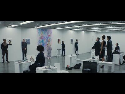 一开始的镜头语言已经说的很明白这是个独特风格不走常规的女孩。所有人的画只有她是涂满了墙壁的unicorn。