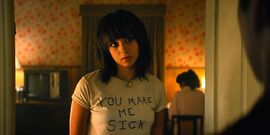 唯恐天下不乱的Melanie,拿导演Sam前妻Cherry流产的事开玩笑,后来违反宵禁又被Cherry抓包,你以为这两个人要结下梁子了,但并没有——她们不是仇人。Melanie虽然行为幼稚,但她也不想惹怒Cherry被开除——她需要这个节目来证明自己还有点价值。Melanie并不坏,虽然抢了Ruth的鞋,但后者吃饭没钱的时候也帮她解围;当其他姑娘来大姨妈求助的时候,是Melanie慷慨分享棉条——这可是真的姐妹情谊啊!