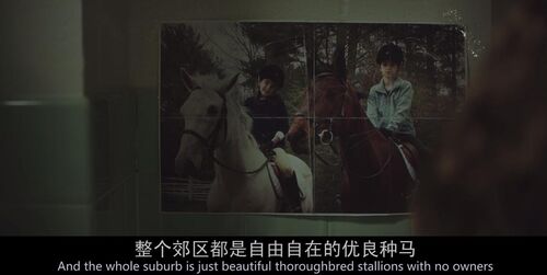 1. Amanda最后的梦里,城市消失了,人类消失了,只有thoroughbreds在“自由”地交配,看下图,Amanda用的词;这个词就是本片的片名:良种动物。