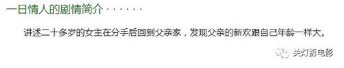 《一日情人》是一部关于爱情和成长的电影。故事讲述了年轻的女孩让娜回到与父亲吉勒疏远已久的关系中,重新建立起父女之间的情感纽带。在这个过程中,她遇到了吉勒的现任情人阿丽亚娜。一开始,让娜对阿丽亚娜的存在感到不舒服,但随着时间的推移,她们之间产生了一种奇妙的关系。通过交流和分享彼此的经历和情感,让娜逐渐理解了父亲吉勒的选择和行为,并与阿丽亚娜建立了一种特殊的纽带。电影通过讲述这个故事,探讨了父女关系、爱情和成长的主题。同时,它也展现了人与人之间复杂而真实的情感纠葛,引发了观众对于人性和情感的思考。