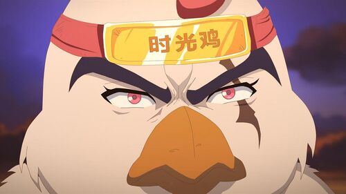 四方神明大战的时候,洪七公的军队则是很像维京人的船只。摆好阵型后一句“敌军还有30秒钟到达战场”差点让我把可乐喷出来,顺势接了一句“碾碎他们” 。而小金刚拿到神杖后被欲望控制时的神情和台词“my precious”是《指环王》中的经典桥段。拉转世变成的的小鸡(或者说鸟?)就是十冷1中的时光鸡,时光鸡脸上的疤是人形神杖所伤,在它掉到地上后又闪了红光,说明神杖的黑暗力量仍未消失附在时光鸡身上。