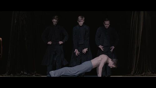 电影中Thelma与Anja以及Anja妈妈一起去看舞剧的那场戏,虽然对舞台表演只给了很少的几个画面,却瞬间让我觉得和某个现代芭蕾版本的《哈姆雷特》非常神似。但我一时想不起来是哪个剧团的演绎,而且对莎翁戏剧了解不多,因此本来不敢妄言。不过看了豆瓣上这篇评论(Q&A NYFF )后,发现可能并不止我会将这部电影与《哈姆雷特》联想到一起。