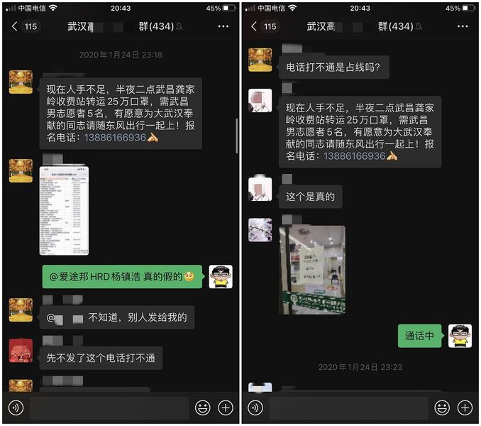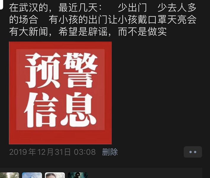 ——12月30日下午,所谓的谣言开始流传,有各种文字、图片的证据,起初是不相信的,大半夜睡不着,凭着仅有的图片证据去寻找一点破绽,找了三个多小时都不能证伪,一下子慌了,凌晨三点多匆忙在朋友圈写下,“近期大家少聚集,出门戴口罩”;