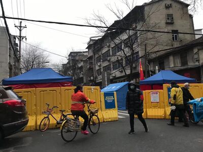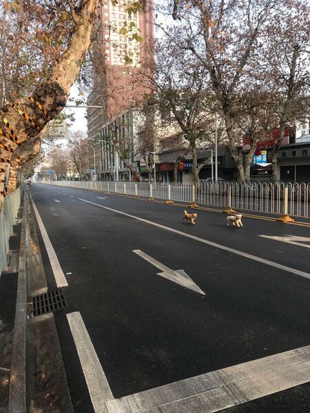 和社区主任来方舱给一个隔离的居民送些日用品,说起的话,这是第一次来方舱……除了牙膏牙刷脸盆之类的,主任很贴心的给放了扑克牌和烟,当然是藏在下面的,躲过了保安的检查。还是男人懂男人,有些看似不好的事,却很能安抚人心;回来的时候,无意间又路过华南海鲜市场,这里已经彻底清扫干净了,道路也恢复通行,这天天气比较晴朗,门面都关着门,路上没有行人,宁静的像午睡的孩子,完全不像是一个”毒窝“;