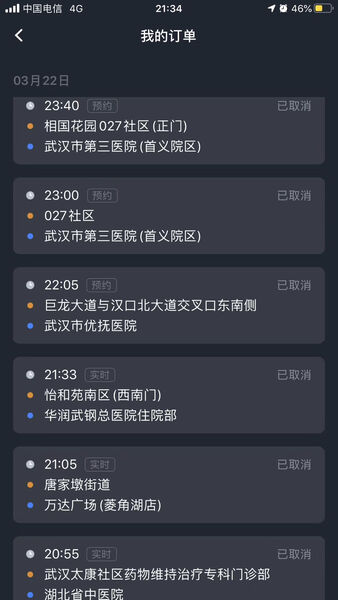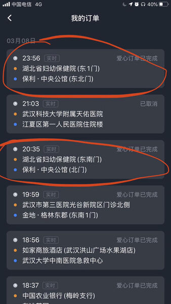 ——3月20日不是这一天发生的事情。如果路途稍远、稍有精神,医护们都会和我聊很多,尽可能把能想起来的关于他们讲的故事,记一下。1.)微信名CQS,一位年长的退休医生,在五里墩卫生服务中心工作,因新冠被返聘回来,家住三角湖江汉大学附近。没有公共交通,又由于周边医院很少,志愿者的车辆和很少在附近,因而经常骑车子到卫生中心,十三公里的样子,至少来回两个月,一个老人家,微信都玩不利索。第一次也是唯一一次接他回家,在他门口绕了好几圈,我都有点生气了,但当他说出前面那些,心里一下子沉甸甸的。后来忙于其他附近的任务,没有再见到他,希望他平平安安,早日退休,享受天伦之乐。2.)好像是红十字医院的医生A。院里的一个同事B,在封城前某天下班,C同事说开车送B一下,B说感谢好意自己搭公交就好。上车后,车上人不多,但有几个婆婆,尽管很冷,但依旧困乏的睡着了,醒来发现坐反了方向,无奈又往回坐。第二天再回到医院,B发现自己有感染症状,一查,确诊。如果不搭公交、不坐反、不挨着婆婆、天不冷、不睡着,都有机会不中招,可命运就是这样弄人。A医生后来的压力很大,平时不喝酒,最严重的那段时间却要靠小酌保持清醒冷静。3.)一医院呼吸科医生,最早接触病人的医院和科室之一,连防护用品都没有,但最终他们科室实现0感染。4.)中心医院后勤管理人员,按照网约车医护接入标准,他没有医护证明,无法打车,他是借医生的证件打车的,因为他要从后湖园区到南京路园区办事,我没有拒绝他,知道后勤人员也是抗疫的坚实后盾,不能没有他们。随口问到说,中心医院不是有摆渡车嘛,怎么不搭摆渡车。他说随着疫情缓和,院里就逐步减少或者取消掉了,我有些无语。很有意思的是,明明马上就要到南京路了,他又被一个电话叫回了后湖,无奈又回去,兜了一圈。5.)六医院某医生,这个最能聊。从台北路附近宾馆送回青山的家取东西,再送回来,前后五十分钟左右,一直在讲他治疗的病例,从治疗过程到后期观察的后遗症,再到几种治疗方法的比较,聊的太专业,让我一头的包,听不懂也记不住很多,还接不上话,只能像个傻子一样嗯嗯啊啊阿巴阿巴……6.)中南医院某医生,夫妻俩,因为限行管制(其实医护私家车可以上路,可能是万一被担心扣分罚款),老公就从家走到医院,再陪爱人回家的。我有点不是很理解,丈夫说,之前坐过一个志愿者的车子,司机在车上直播,他很不爽这种作秀,不愿意配合,就被赶了下来。于是再不想坐志愿者的车子,都晚上十点多,而且今天下雨,怕妻子感冒才叫车。我安慰他,那只是少数败类,大部分都是在认真做志愿者的。而且真的很羡慕他们的神仙爱情,晚上走到医院,再陪爱人从医院走回家,可能大部分人都做不到的事情,你做到了!爷们!7.)带医护们回家的路上,有过帮他们买数据线、修手机、买菜,等等,还有很多,只是都零零碎碎拼不出几乎话,就算了。但最后这个,是我非常愧疚的一次,一定要说出来。是天佑医院到武汉世茂林屿岸的一个医生,起因就是来之前路上变更两次上车地点,还都蹩脚不好走,到了位置等了半个多小时不见下来,待下来后又变更上车位置,又要绕过去,心里非常毛躁。回去路上油门踩的飞起,也没讲话,送到位置后扭头就走了。待回家后才发现,车上放了一箱子的牛奶。一下子过意不去了。她们本来就承受了很大压力,哪怕做的有些不妥,也应该多体谅他们,不该在送他们回家的时候使性子,还要拿他们发的东西。这事一直压在心中,谁也没有讲。希望她能看到这些,希望能得到原谅;