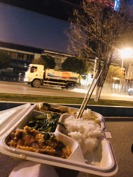 晚上八点十分的样子,趁医院上下班过了一个高峰期,抓紧时间蹲在路边吃盒饭。刚吃完,眼见一辆电瓶车和一辆自行车撞了……电瓶车是年长大爷,社区防疫志愿者;自行车是年轻姑娘,医院医生。大爷除了车破了,没啥大事,唯独医生的脚本就有伤,这下又可能添新伤。路边刚好有人,帮忙搀扶人,在警察来之后就散去,我询问医生为啥不叫车接送,又不要钱。她说不好叫到,索性就骑车,不远,心里有些愧疚,高峰期是很难叫到,那几个时间段,我们都是忙到飞起(后来还练出来边开车边吃盒饭的技能,反正路上车不多),能拼车都盼他们医护拼车,尽管有人也因为介意安全不愿意拼车,那就只能继续等待叫车。医生想拍个片子,可尽管有自己的同事、校友的关系,但依旧是打了半个多小时电话、找了好多家医院,才问到协和晚上有值班,可以去拍,太难了。说实话,我这疫情后第一次进到接诊发热病人的医院(前面2.3有讲过相关),有点怕,把能穿戴的都整上,也幸好偶尔在一些志愿者群做过送物资的事,混到了几件防护服,给医生也整了一套。电视、网上看到的医院是一种感觉,进来后又是一种感觉,有点窒息,不敢喘大气,而这还不是发热门诊,只是急诊。拍片诊疗开药送医生回酒店,急忙把身上的这套装备都处理掉,这才发现自己带的口罩是民用一次性口罩,脑壳当时就嗡嗡的,才1点多,赶紧回家,需要早睡冷静一下;
